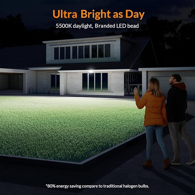 - Motion Sensor Lights: Security motion light can be triggered by the moving human, cars or animals up to 72 feet sensing range at 180° detection angle; Brings extra safety to your home