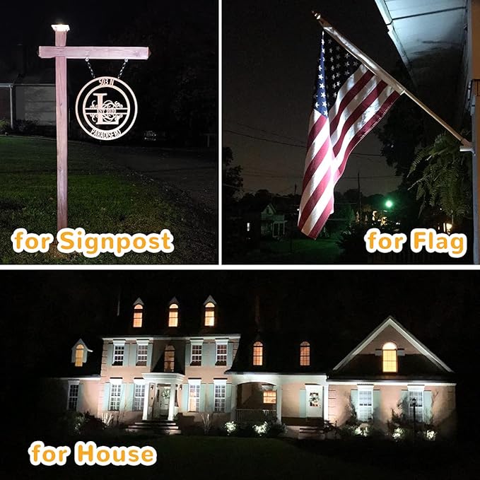 - Separately Adjustable Light & Solar Panel: The solar spotlights can be adjusted up to 90° to illuminate any outdoor space. The solar panel can be adjusted up to 180° for optimum sun exposure