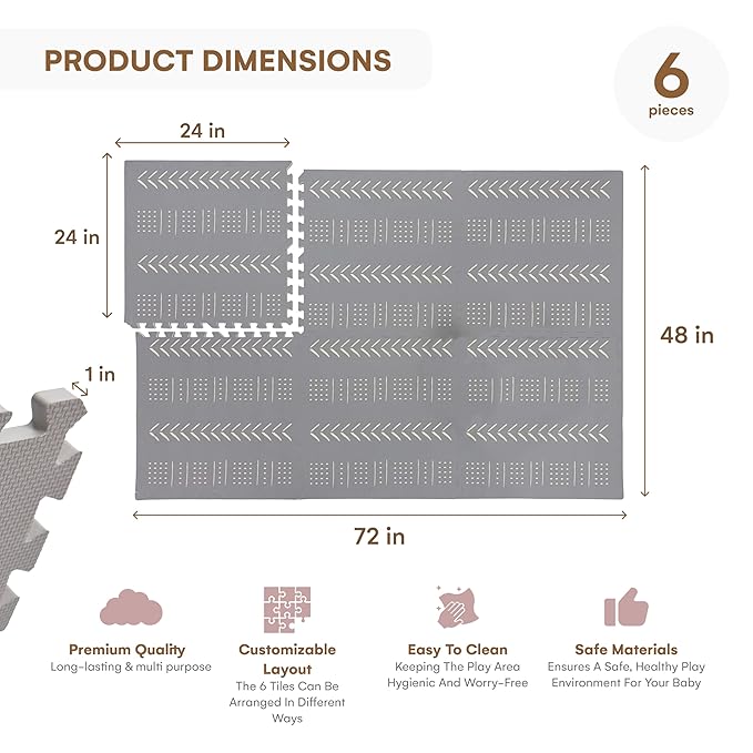 - Durable and Quality Material: Made from quality EVA foam, this 72x48-inch baby mat for floor play has no phthalates and PVC; designed to support early childhood development with engaging patterns