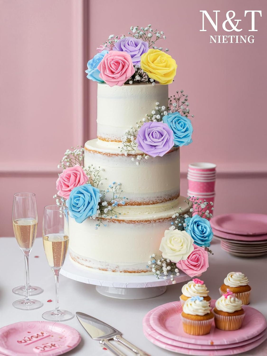N&T NIETING Artificial Flowers, Fake Flowers Roses Perfect for DIY Wedding Bridal Bouquets Centerpieces Bridal Shower Party Home Flower Arrangement Flowers Decorations, 25Pcs, Series Color B