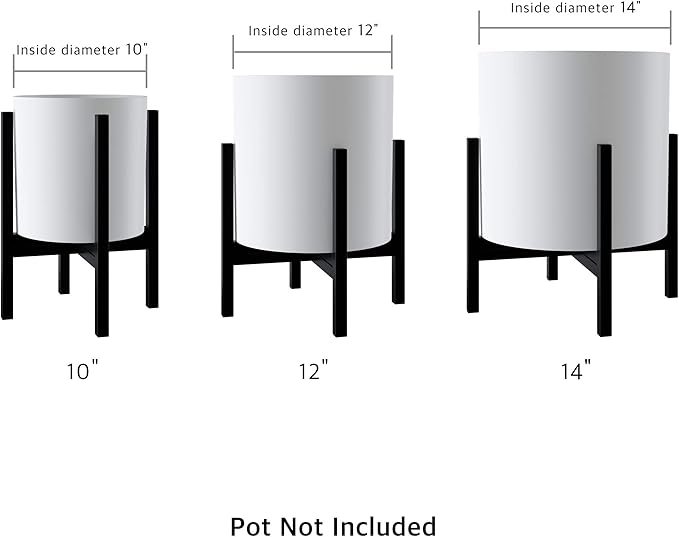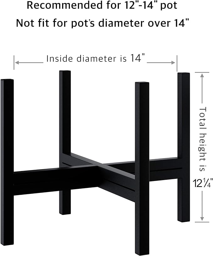 - 【Size & Matching Pot】- Height is 12 1/4” , interior diameter is 14". Fits perfectly with all outdoor indoor flower pots that are 14" or smaller in outer diameter. The plant stand comes without the pot. We have 14" plant pots available that fit this plant stand seamlessly. Simply search Amazon for " 14" Plant Pot " for perfect match.