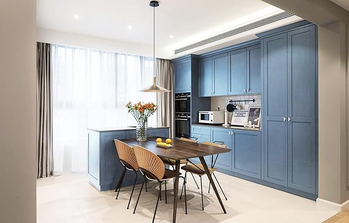 Dimoon 118''x17.7'' Blue Peel and Stick Wallpaper Contact Paper Modern Self Adhesive Wall Paper Removable Renter Friendly Textured Solid Color Shelf Cabinet Vinyl Roll (118''x17.7'',Blue Grey)