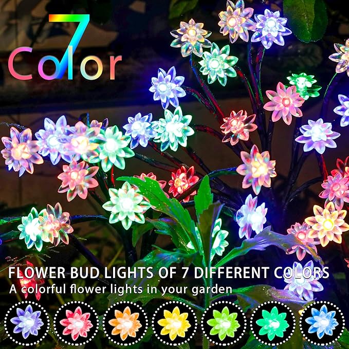 - 【ASSEMBLE & LIT UP】Assemble the flowers buds, then push the switch to " ON" position, enjoy the most unique solar decoration light in your front yard
