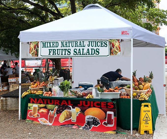 - Sturdy Canopy Structure: Super strong truss bars. Sturdy steel feet with two drilled holes. Smooth and safe push button sliders. Reinforced stress points where peak poles meet. Stable and much longer to last.