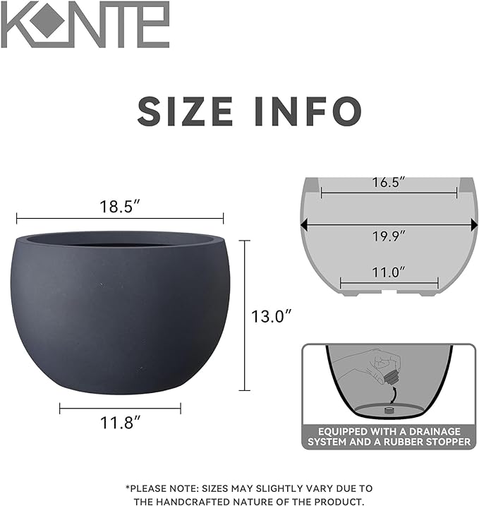 Kante 19.9" Dia Round Concrete Planter, Outdoor/Indoor Large Bowl Plant Pots with Drainage Hole and Rubber Plug for Garden Patio Balcony Home, Charcoal