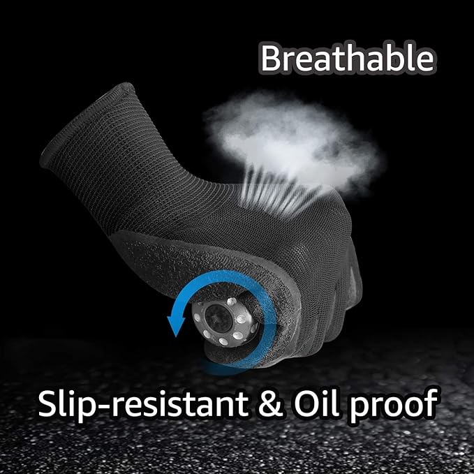 - TEXTURED COATING: Latex/rubber palm and finger crinkle coating, provides Anti-slip, Cut and Puncture resistant and repels light liquids