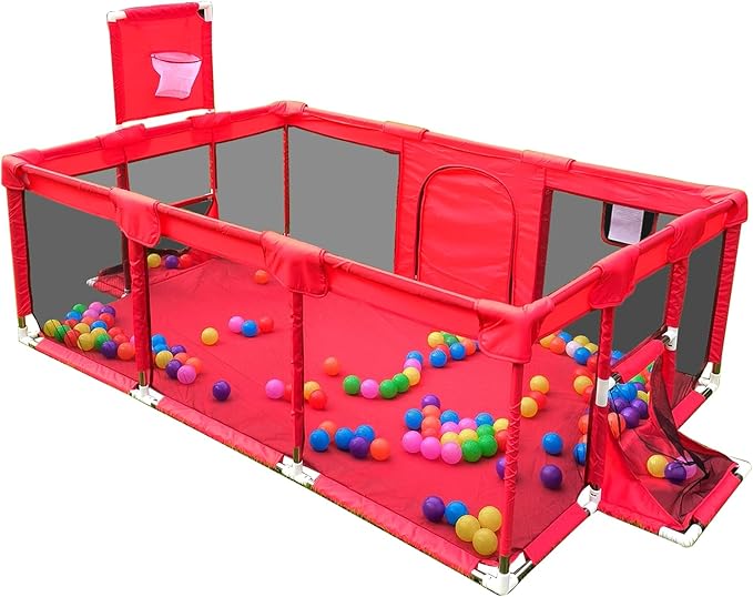 - HELPS DEVELOP CHILDREN'S INTELLIGENCE. Our baby play fence is equipped with some pull rings to help children walk inside the fence,In addition, the fence has a football gate and a basketball net.If you put some ocean balls in it,They can help improve your child's intellectual development.Free to explore the unknown world.