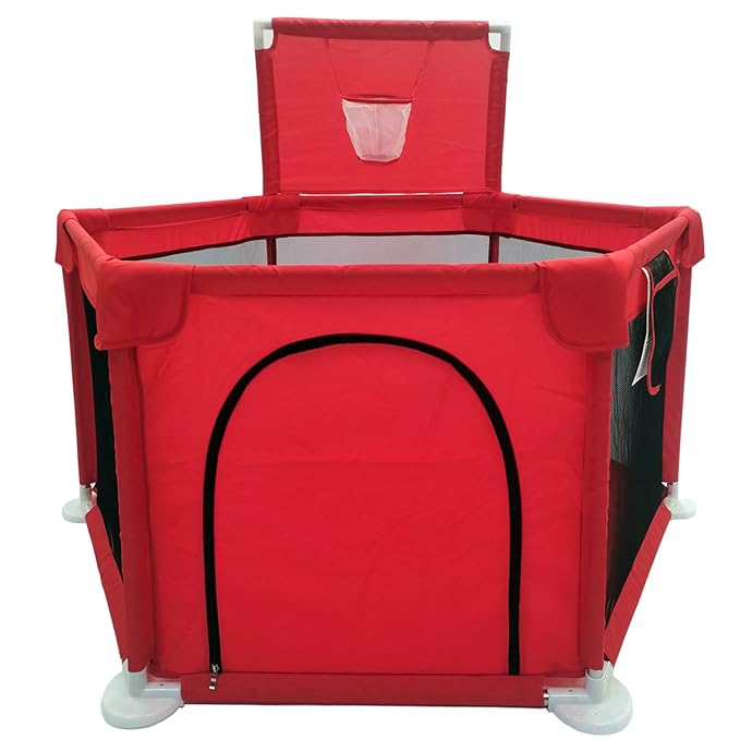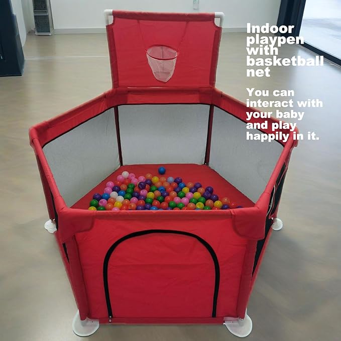 Portable Baby Ball Pit Playpen Playard Fence Playtent with Basketball Hoop Breathable Mesh for Indoors Outdoors Toddler Kids Large