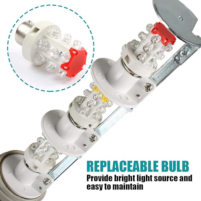 - Light Source: RED/YELLOW/GREEN 3 layer stack light, 15 light beads on each layer, compared with tungsten bulb, it has a brighter and eye-catching light and longer working life