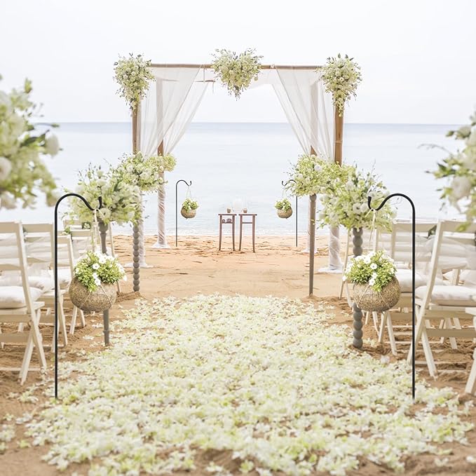 - Multiple applications of shepherd hooks: Garden shepherd's hooks are suitable for outdoor wedding aisles, and can also be used to hang flower pots, bird feeders, solar lights, lanterns, flower pots,decorations, flower balls, garden lights, glass bottles, holiday decorations, string lights, bird baths, plant racks and other garden decorations