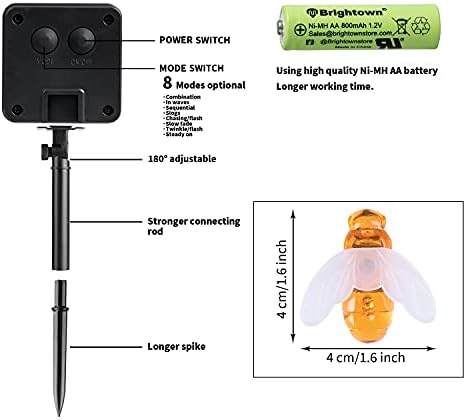 - 【Efficient Solar Bee String Lights】The solar outdoor lights equipped sophisticated and 180 degree adjustable monocrystalline silicon solar panel with inbuilt 800mAh rechargeable battery; When the built in NiMH battery saves enough solar energy in the daytime, the string lights can automatically work for 8 to 10 hours at night, no extra utility electric cost.