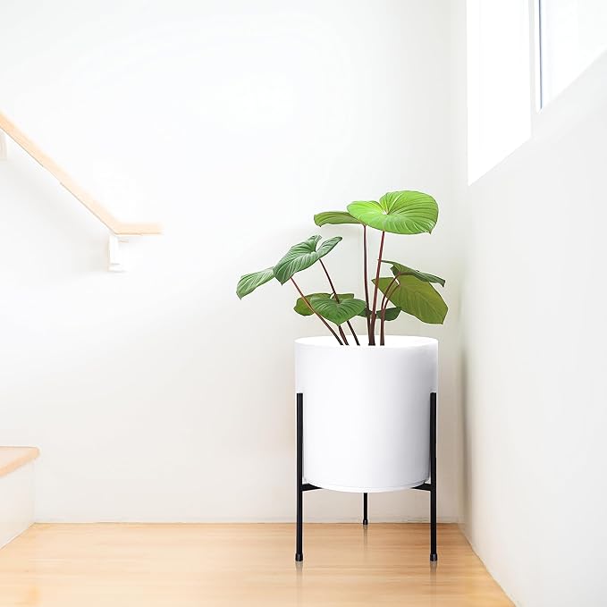 - Complete Set: The set includes the pot with drainage hole, metal stand, mesh net, rubber plug, ceramic balls filler, and drainage cup for easy setup.
