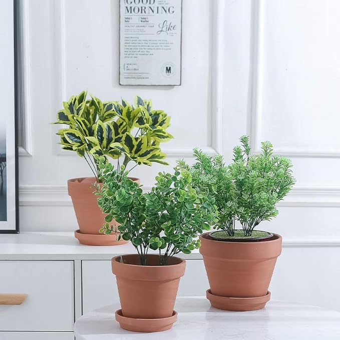 - ★【TERRACOTTA】Terracotta pots are classic planting pots, with a neutral and warm color that makes almost any plant look great. Terra cotta dries out more quickly than other mediums. Suitable for propagating seedling, collecting succulents and small plants like succulents, cactus, herbs, moss ball, and bring so much positivity.