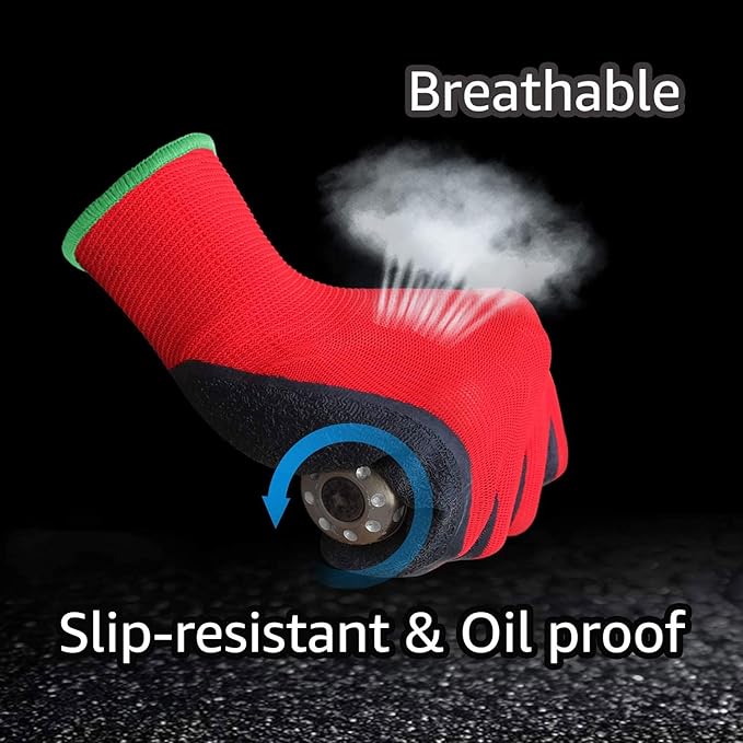 - TEXTURED COATING: Latex/rubber palm and finger crinkle coating, provides Anti-slip, Cut and Puncture resistant and repels light liquids.