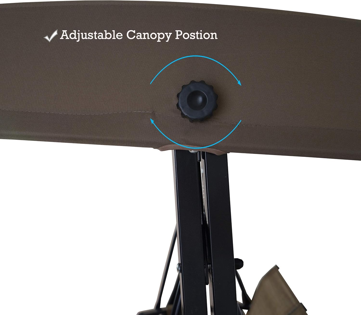 - ✅3 Person Seating Capacity - This porch swing with canopy has a comfortable, long bench seat design with room for three. Suitable as an outdoor swing chair, garden swing, backyard swing, lawn swing, patio swing chair, deck swing, or a yard swing.