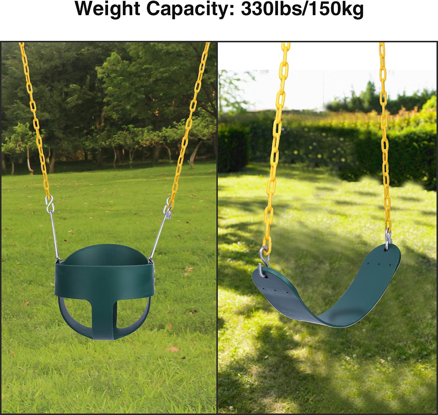 - Premium Quality: The swing combo is made of high quality EVA material to ensure hours of fun and years of play. High back full bucket swing with heavy duty swing seat combo is constructed with durable plastic and heavy duty components.