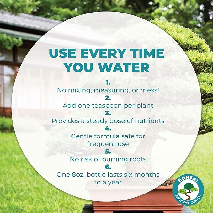 - ⭐ EFFORTLESS NOURISHMENT: No mixing, no measuring, and zero cleanup required. This formula is gentle enough for consistent use during every watering session—just dilute one teaspoon in a cup or more of water for your bonsai's rejuvenating soak.
