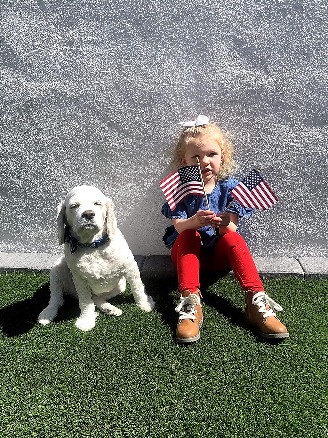 American Flags on Stick - Handheld Spearhead US Flag for 4th of July, Memorial Day Event Decorations - Patriotic Decor for Indoors & Yard - Wooden Stick, Cotton Fabric (4"X6" - 12 Pack)