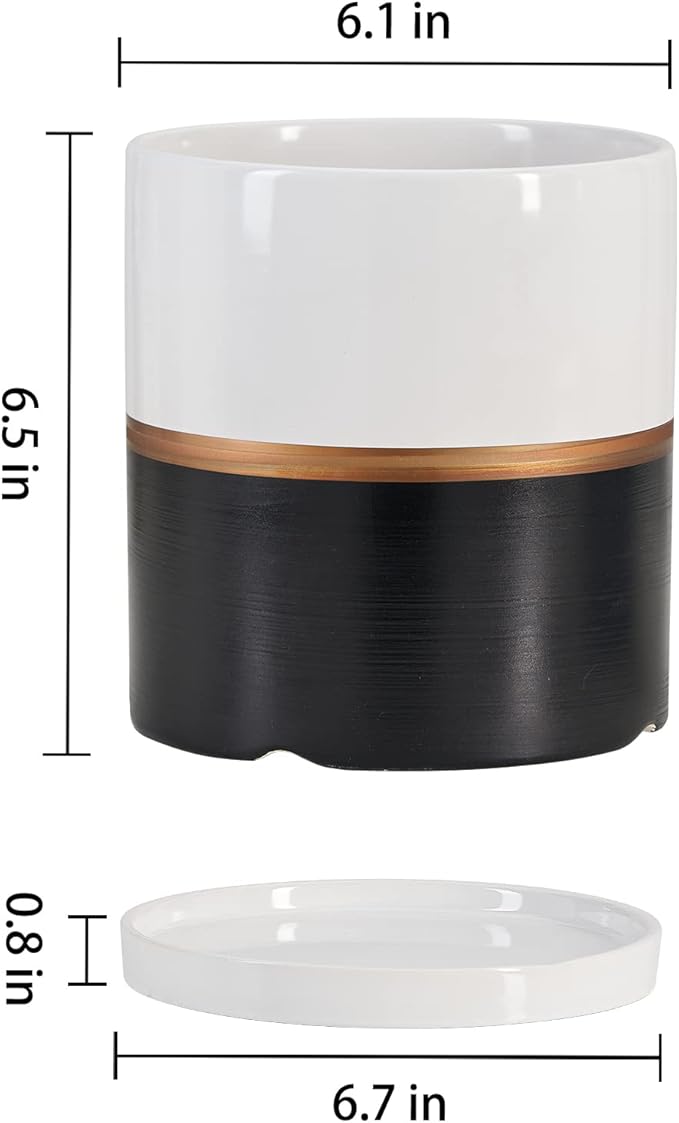 Ekirlin 6 inch Plant Pot - Ceramic Flower Planters Indoor - Modern Succulents Containers with Drain Hole Saucer, Decorate Home, Office & Outdoor (Black)