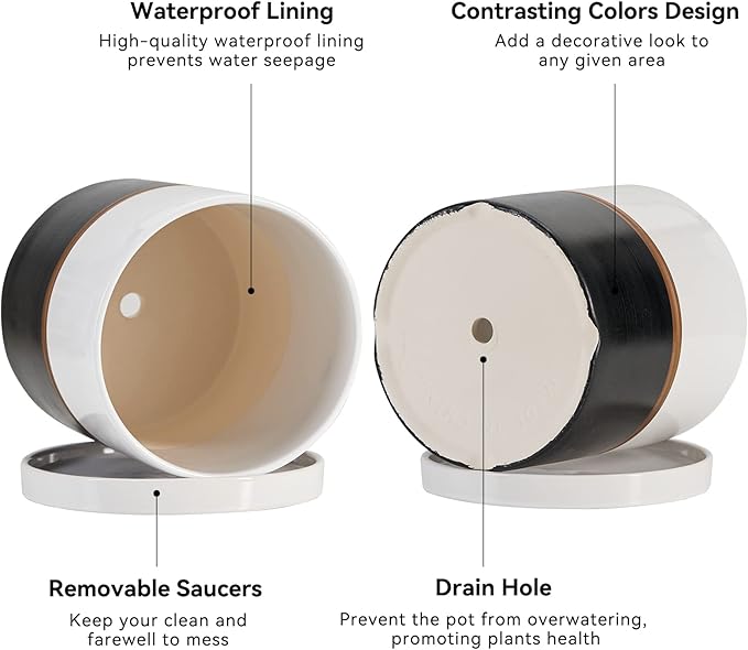 - 【Drain Hole & Saucer Tray】 Comes with a drain hole at the bottom, which can prevents the plant pot from overwatering, promoting plants health, and help them thrive. Saucer base for catching excess water without drips, works well for keep table clean