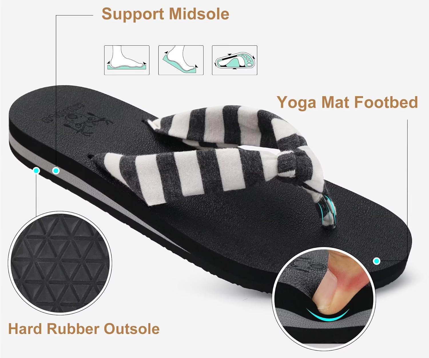 KuaiLu Flip Flops for Women with Arch Support Yoga Mat Comfortable Summer Beach Walking Thong Cushion Sandals Slip On Indoor Outdoor
