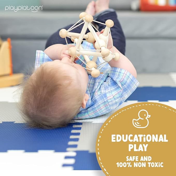 Play Platoon Non-Toxic Foam Puzzle Floor Mat, Comfortable, Extra Thick, Cushiony Exercise and Play Mat for Toddlers, Kids & Adults, 36 Tiles (12"x12"), Grey/Cream/Navy