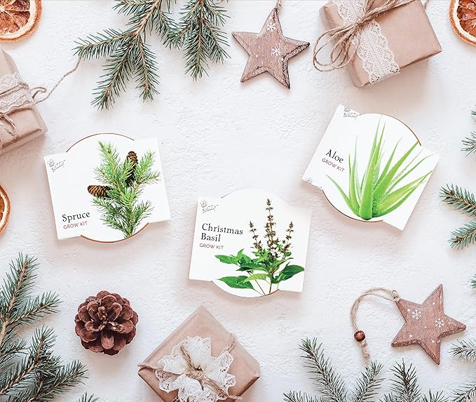 - Assorted 12-Pack: The bestselling Radiant Collection includes terracotta pots and seeds to grow, 4 Aloe, 4 Christmas Basil, and 4 Spruce