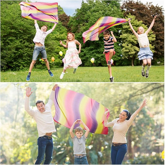 - Creative and fun: 3 style silk rainbow scarfs are suitable for playing dress up, doll blankets, dancing and twirling, capes, preschool activities and songs, Halloween costumes, picnics, traveling, movement, juggling, and more