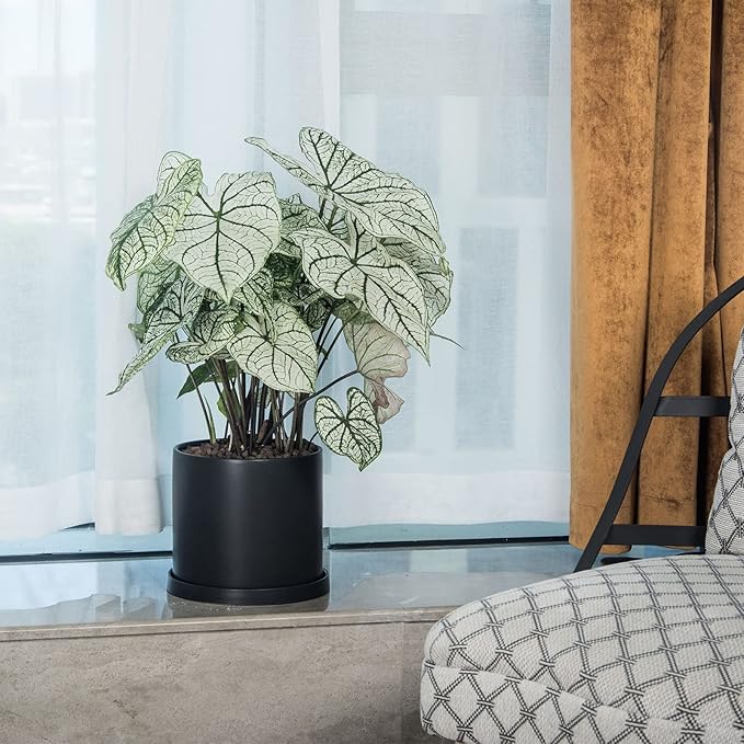 Planters for Indoor Plants Ceramic Flower Succulent Plant Pots with Drain Hole Saucer Decor for Home Office (6 inch Black)