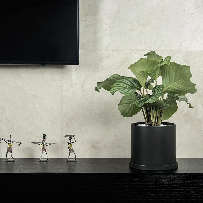 Planters for Indoor Plants Ceramic Flower Succulent Plant Pots with Drain Hole Saucer Decor for Home Office (5 inch Black)