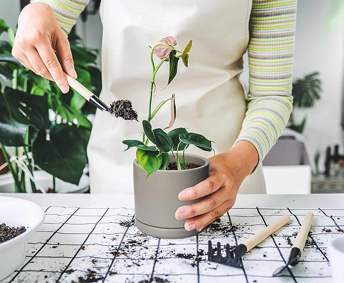 - Pack of 2 Planter Pots - 4.6" Diameter (4.2" Inner Diameter) * 4.5" Height. Potting Soil Needed≈ 0.2 Gallon / 0.8 qt.