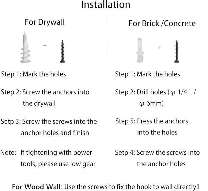 - ADDITIONAL DELIVERY- We configure professional drywall anchors for gypsum ceilings, Concrete walls, and wood walls, Allowing you to easily install them in any hanging position.