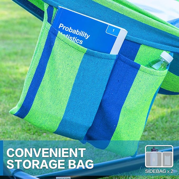 - DOUBLE HAMMOCK , It has the stronger and durable steel stand, a hook with a metal buckle. 450-pound weight capacity easily accommodates up to two people at once