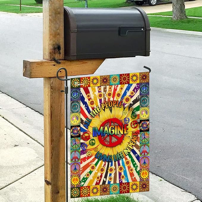 FLAGWIX Flags - Imagine All The People Living Life In Peace Hippie Sunflower Flag DDH1826F, House Flag (29.5" x 39.5") - USA House Garden Flags Premium Polyester - Decorative Outdoor Flags