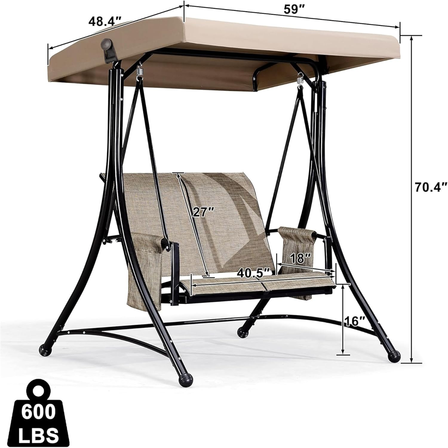 PURPLE LEAF 2-Seat Deluxe Outdoor Patio Porch Swing with Weather Resistant Steel Frame, Adjustable Tilt Canopy, Beige