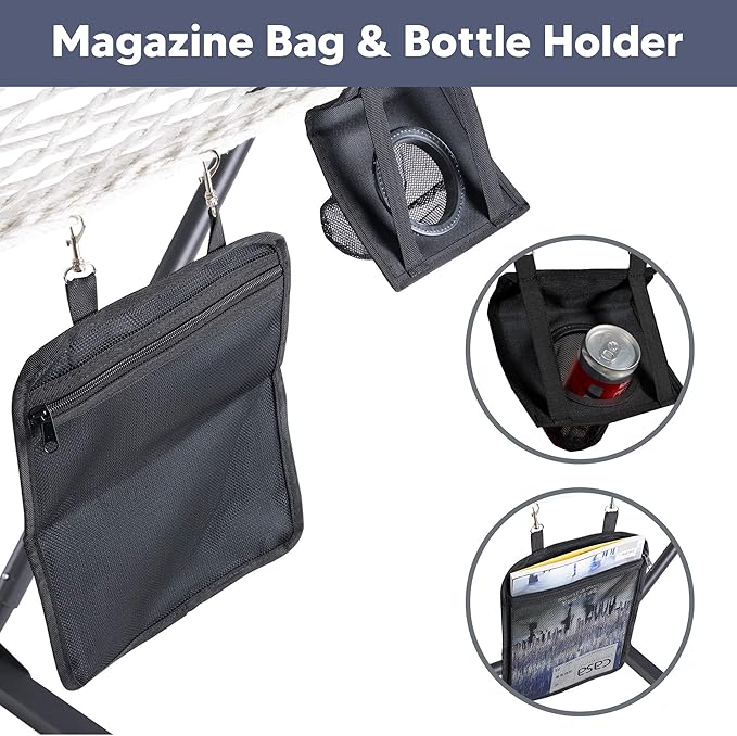 - Upgraded 30% Thicker Ropes: The upgraded strong poly-cotton ropes are hand-woven with comfortable, long-lasting threads woven by the hammock artisans, 30% thicker than before. When you lay on the rope hammock, it helps you relieve stress and provide better blood circulation throughout the body. And thanks to the well ventilated mesh, your back won’t be sweaty anymore