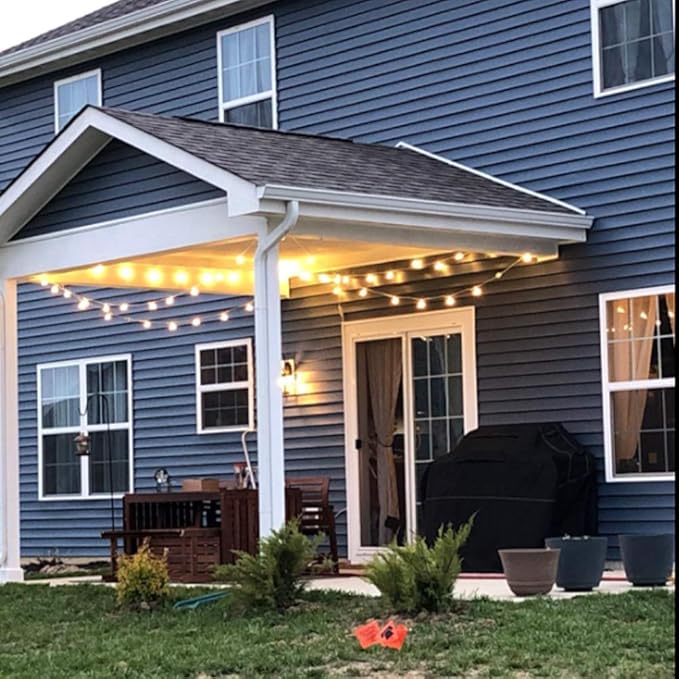 - ❤ Dimmable: G40 Led patio string lights is compatible with dimmer, perfectly to diming the brightness. Great for bistro, pergola, backyard, market, café, gazebo, porch, Weddings, Garden, BBQ, birthday parties, Christmas, Halloween celebration and decor, crating a romantic, warm and cozy atmosphere