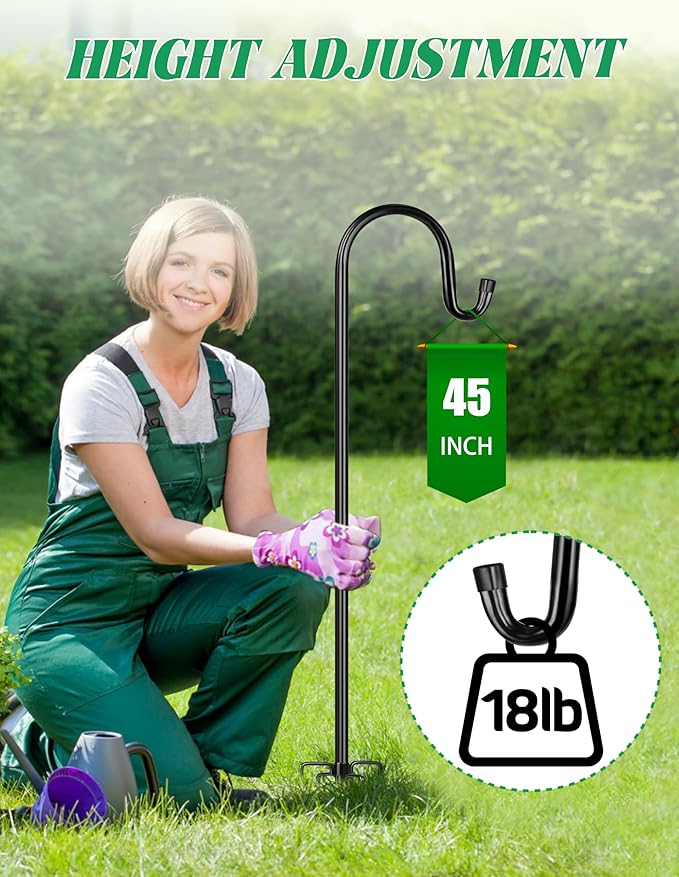- Effortless Setup and Installation: Setting up your Shepherd's Hooks is a breeze. Simply stake them into the ground, and they are ready to hold your favorite garden decorations, bird feeders, or lighting fixtures, allowing you to transform your space in minutes.