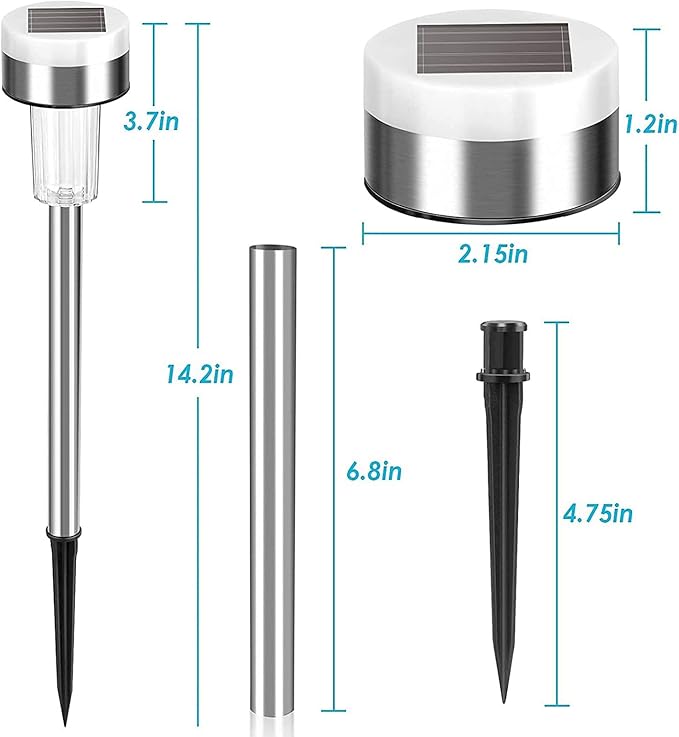- HIGH EFFICIENCY:This solar path light measures 2.6×2.6×13.07 inches and charge during the day, turn on at night and turn off at dawn automatically. After fully charged, this solar light can last 12 hours.