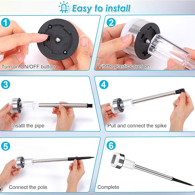 - EASY TO INSTALL & USE: No addition tools and wires required to install this solar powered landscape light.Just assemble them and insert them into the ground,it is environmental protection and saving.