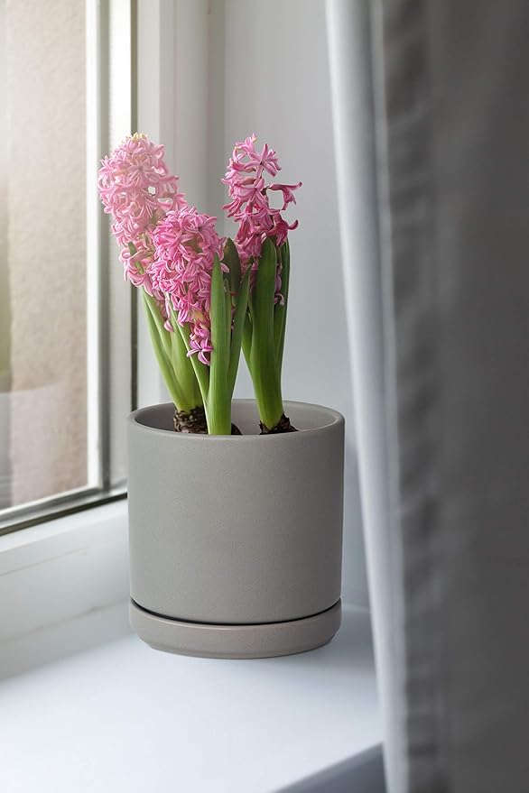 - Drainage holes and detachable/perfectly fitting ceramic saucers included.
