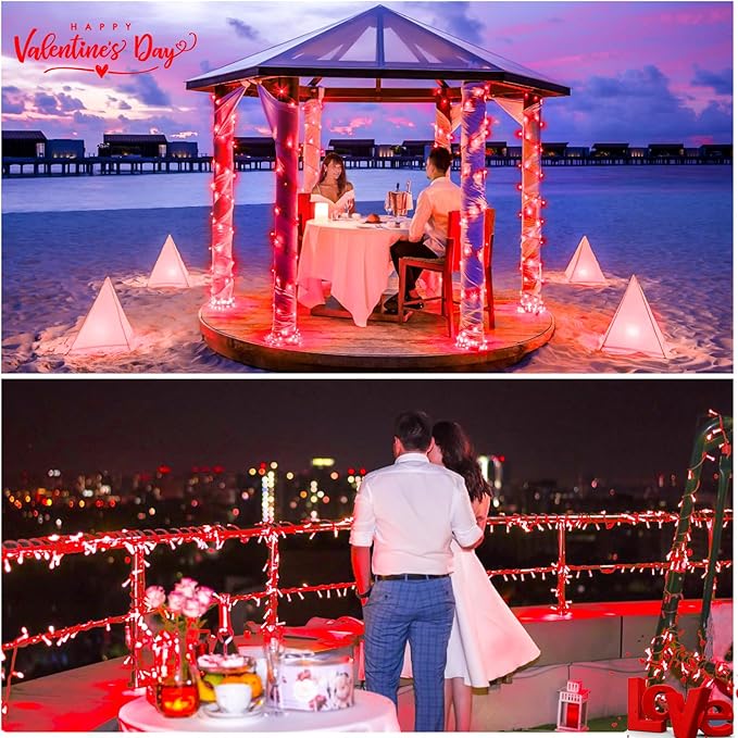 - 【Romantic Red Valentines Lights】Our red string lights use high brightness led bulbs, and each crystal clear LED bulb shines with a 360-degree viewing angle. In addition, the design of the plug greatly improves the stability of the bulb's brightness. These red Valentine's Daylights create a stunning and unforgettable romantic atmosphere for your Valentine's Day! HAPPY VALENTINE'S DAY!!!!!