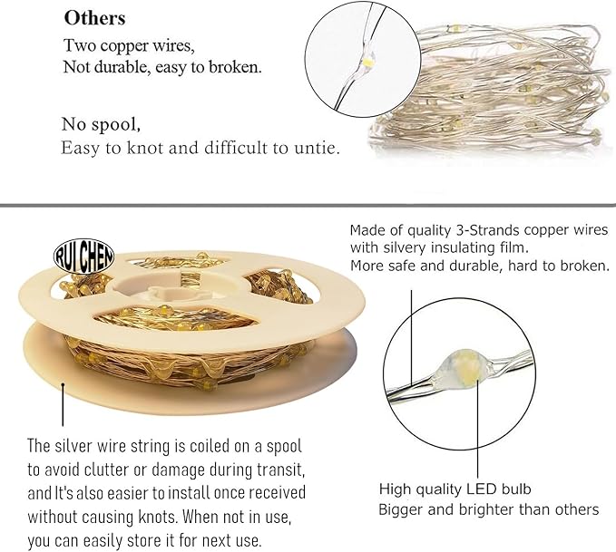 - 🎄Worry-Free After-Sales Service: Please be confident to buy RUICHEN fairy lights. Don't like it once received? Just return it by Amazon. We have a professional customer service team, if you have any questions during use, please feel free to contact us via the Amazon message box.