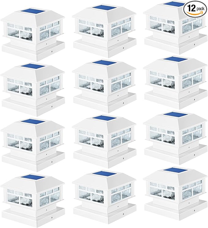 Solar Post Lights Outdoor, 20LM Solar Fence Cap Lights, Waterproof, 2 Light Modes, fit 3.5x3.5in 4x4in 5x5in Wooden Post, Solar Power Deck Light for Garden Deck Patio Decoration(White 12Pack)