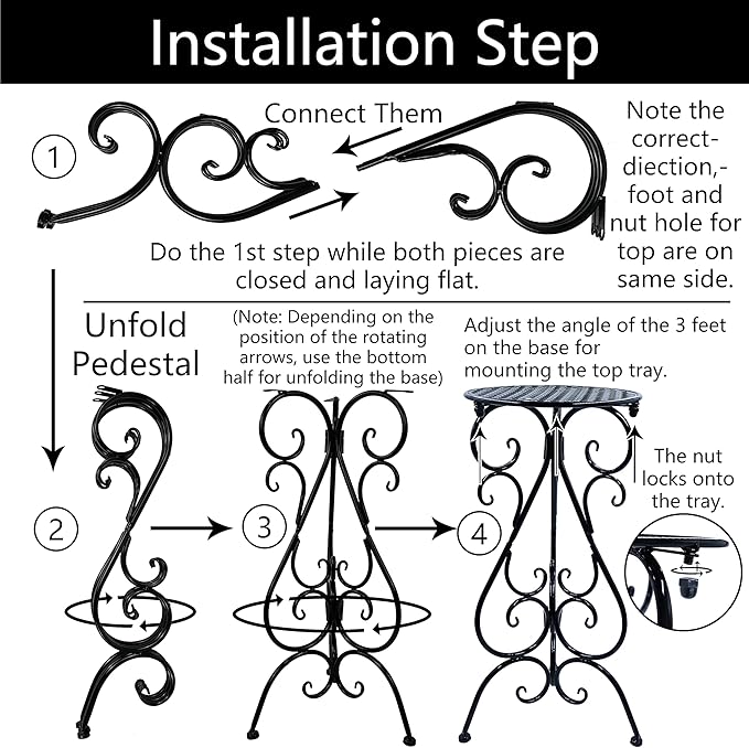 - ❀[Material]Plants table made of high strength wrought iron, make it strong and durable and can hold up to 50 pounds. Surface painting process makes this small decorative shelf anti-corrosion and rust proof.