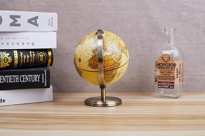 - MORE THAN DECORATION: Antique Globe (5.5-inch) has high quality printing which is fine and clear, led to a very easy and enjoyable experience when one to read the geographical sphere. It displays countries, political boundaries, capital cities, major cities, and more, feel free to use it every day and refer to it anytime.