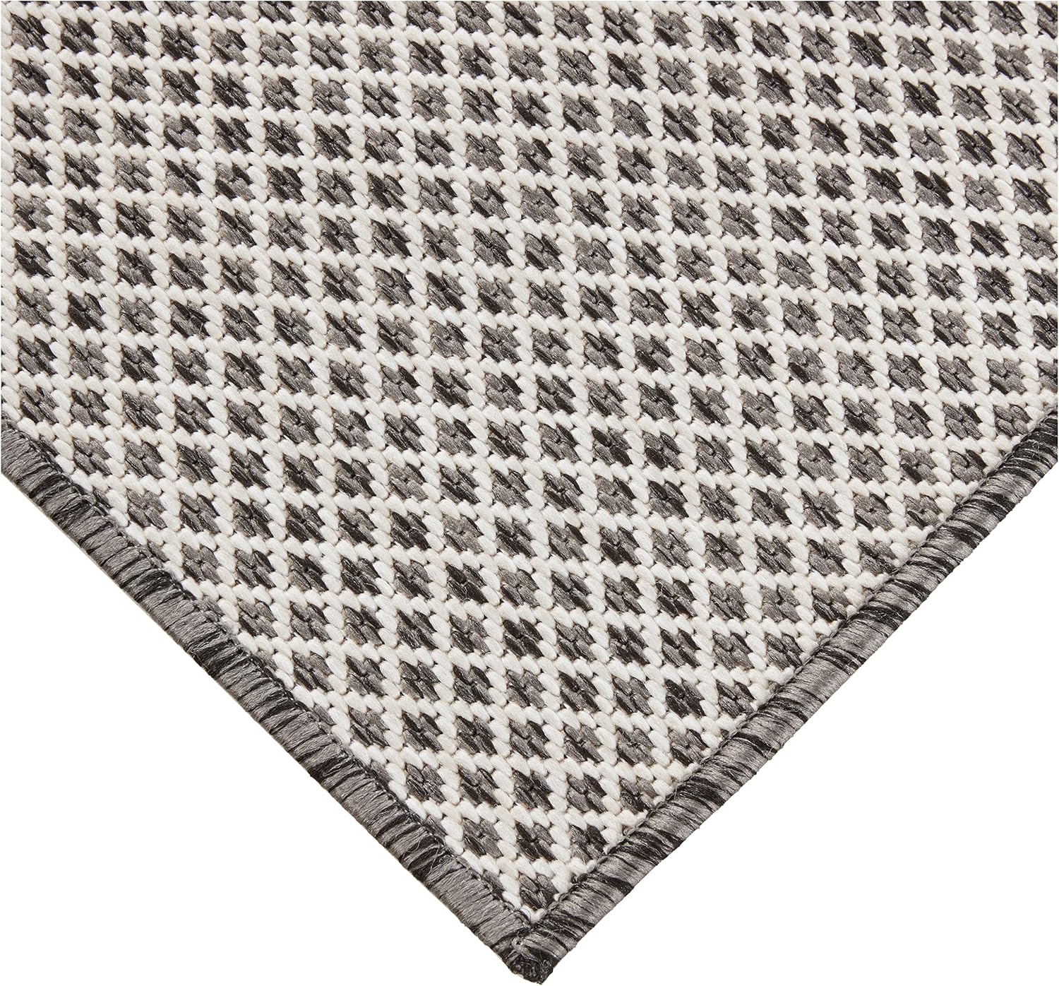 Nourison Courtyard Indoor/Outdoor Ivory Charcoal 3' x 5' Area Rug, Geometric, Easy Cleaning, Non Shedding, Bed Room, Living Room, Dining Room, Deck, Patio, Backyard (3x5)