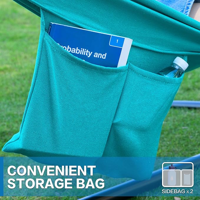 PNAEUT Double Hammocks with Stand for Outside, Portable Space Saving Heavy-Duty Steel Stand for Indoor Outdoor Patio with Carrying Bag, 450 lbs Capacity (Aqua)