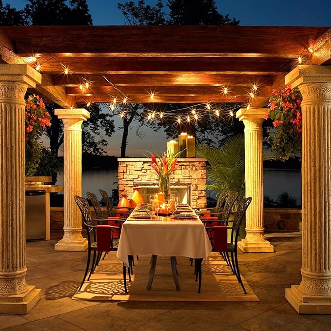 - Vintage C7 Christmas Clear String Lights: Outdoor clear led C7 string lights glow a natural warm, create a vintage effect or antique ambiance & romantic atmosphere. C7 christmas string lights outdoor perfect for outside christmas garden patio yard cafe tent porch deck party backyard decoration and lighting
