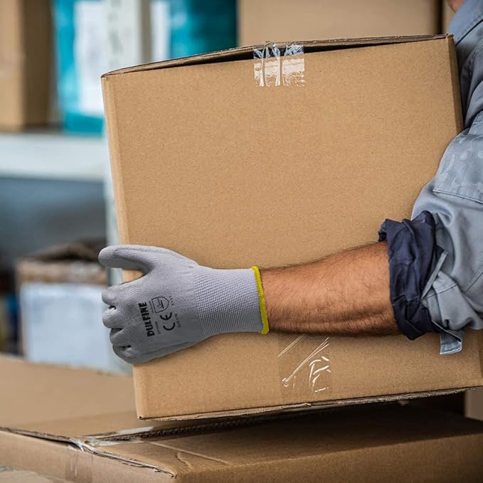 DULFINE Safety Work Gloves PU Coated-12 Pairs,Grey Seamless Knit Glove with Polyurethane Coated Smooth Grip on Palm & Fingers, for Men and Women, Ideal for General Duty Work (Medium)